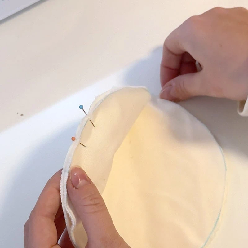 Fill each petal evenly with stuffing so they look plump and soft. Fold the seam allowance of the inner circle inward and close it neatly with an invisible ladder stitch.