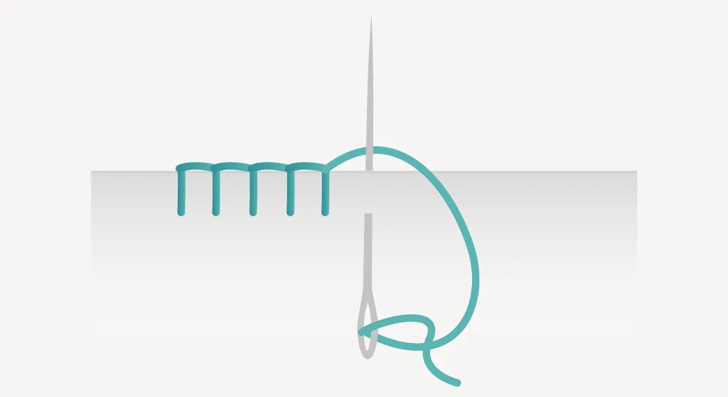 - Stitch right next to the edge and pass the needle over the thread loop.