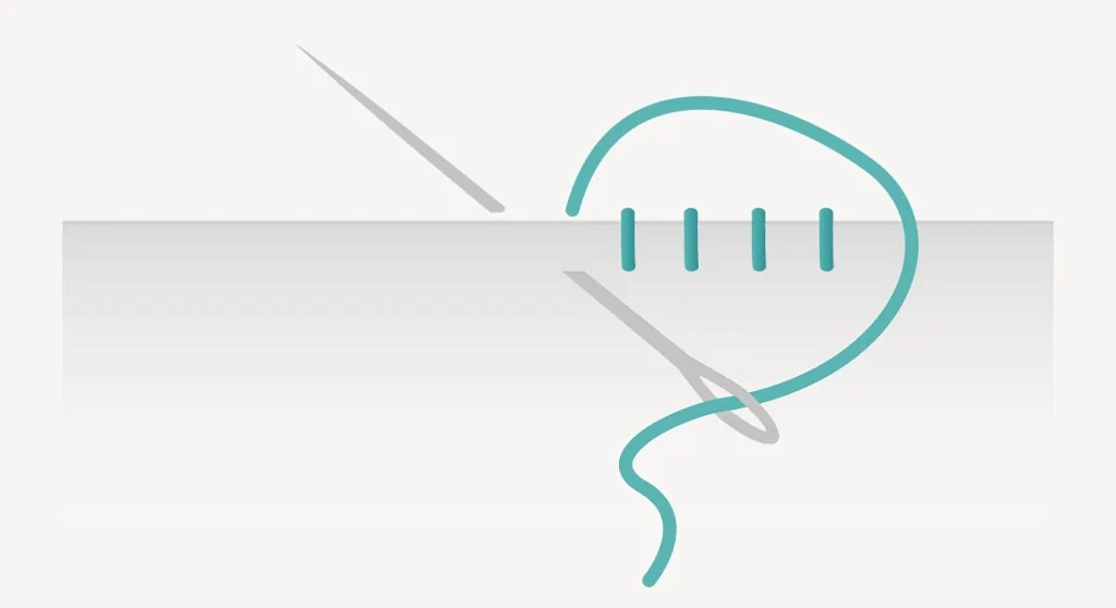 - Hide the knot behind the patch as with the overcasting stitch.