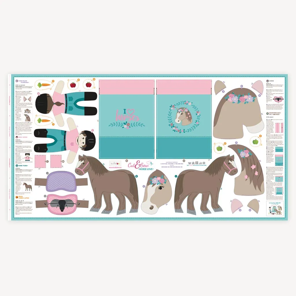About the cut and sew horse fabric panel “Horse Love”