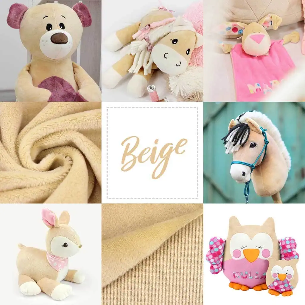 Our SuperSoft SHORTY beige minky fabric is a slightly stretchy, high-quality microfiber plush, also known as velboa fabric. The short-pile cuddle fabric is just perfect for so many sewing projects, no matter if you need it for sewing children’s toys, for decoration or home textiles. You can sew lovely plushies with the many cheerful and bright colors, but also wonderful baby blankets, comforter or other baby accessories.