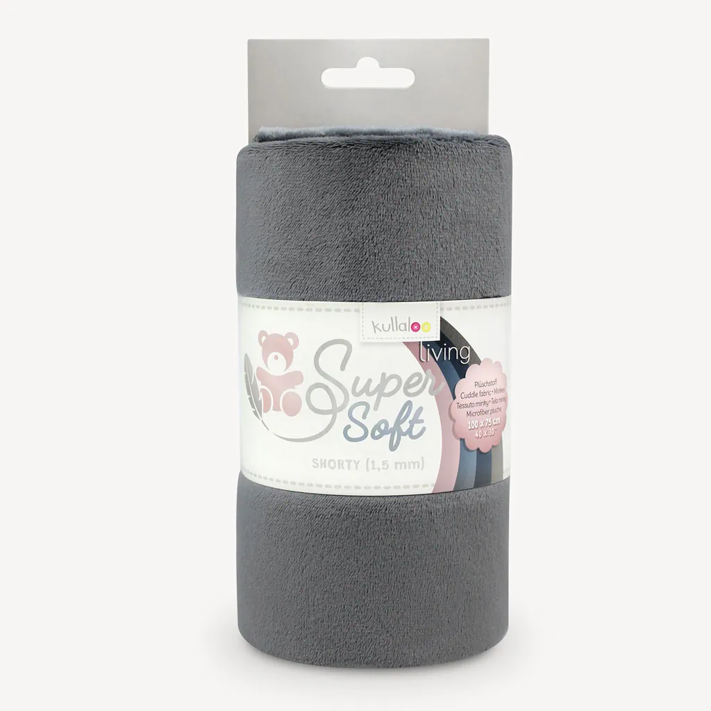 Our SuperSoft SHORTY ash gray minky fabric (dark grey) is a slightly stretchy, high-quality microfiber plush, also known as velboa fabric. The short-pile cuddle fabric is just perfect for so many sewing projects, no matter if you need it for sewing children’s toys, for decoration or home textiles. You can sew lovely plushies with the many cheerful and bright colors, but also wonderful baby blankets, comforter or other baby accessories.