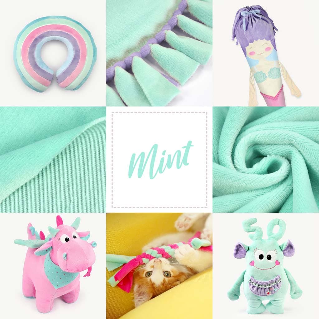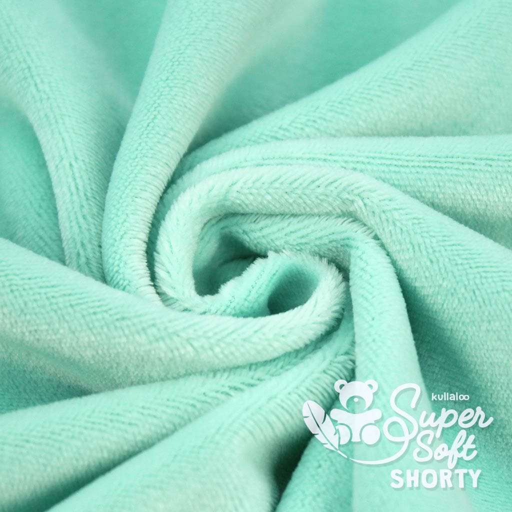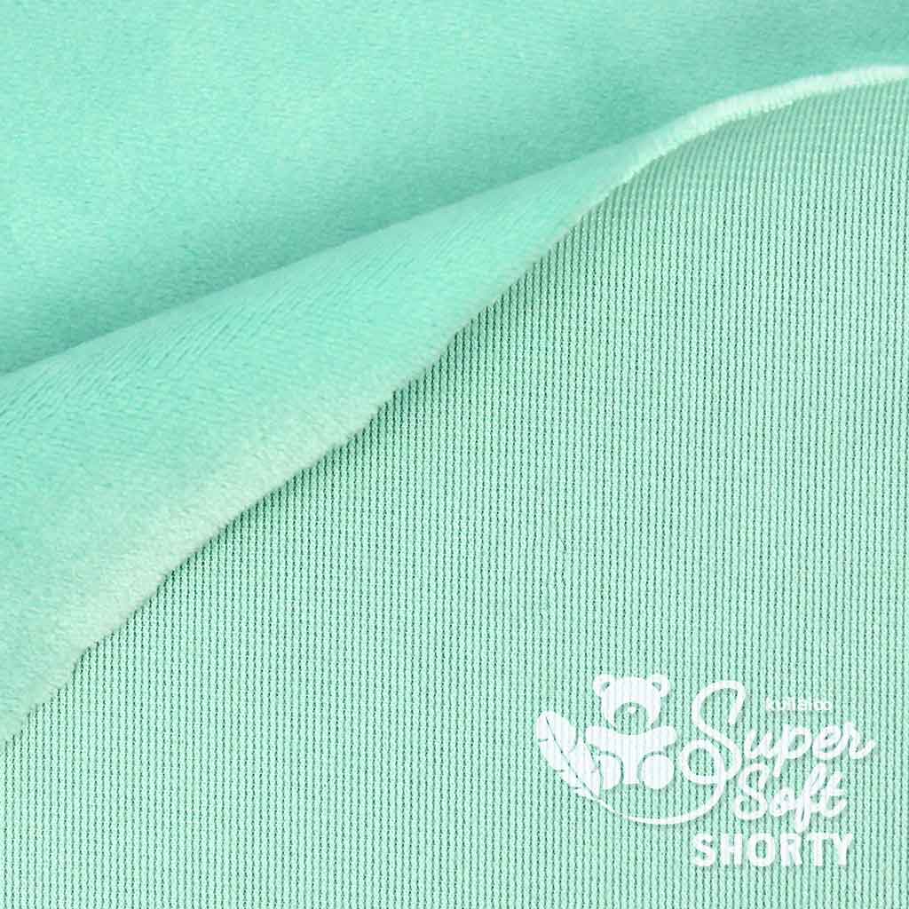 Our SuperSoft SHORTY mint green minky fabric is a slightly stretchy, high-quality microfiber plush, also known as velboa fabric. The short-pile cuddle fabric is just perfect for so many sewing projects, no matter if you need it for sewing children’s toys, for decoration or home textiles. You can sew lovely plushies with the many cheerful and bright colors, but also wonderful baby blankets, comforter or other baby accessories.