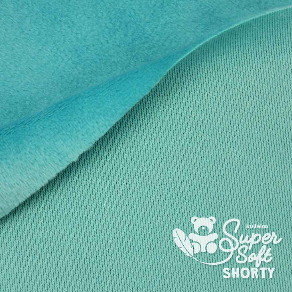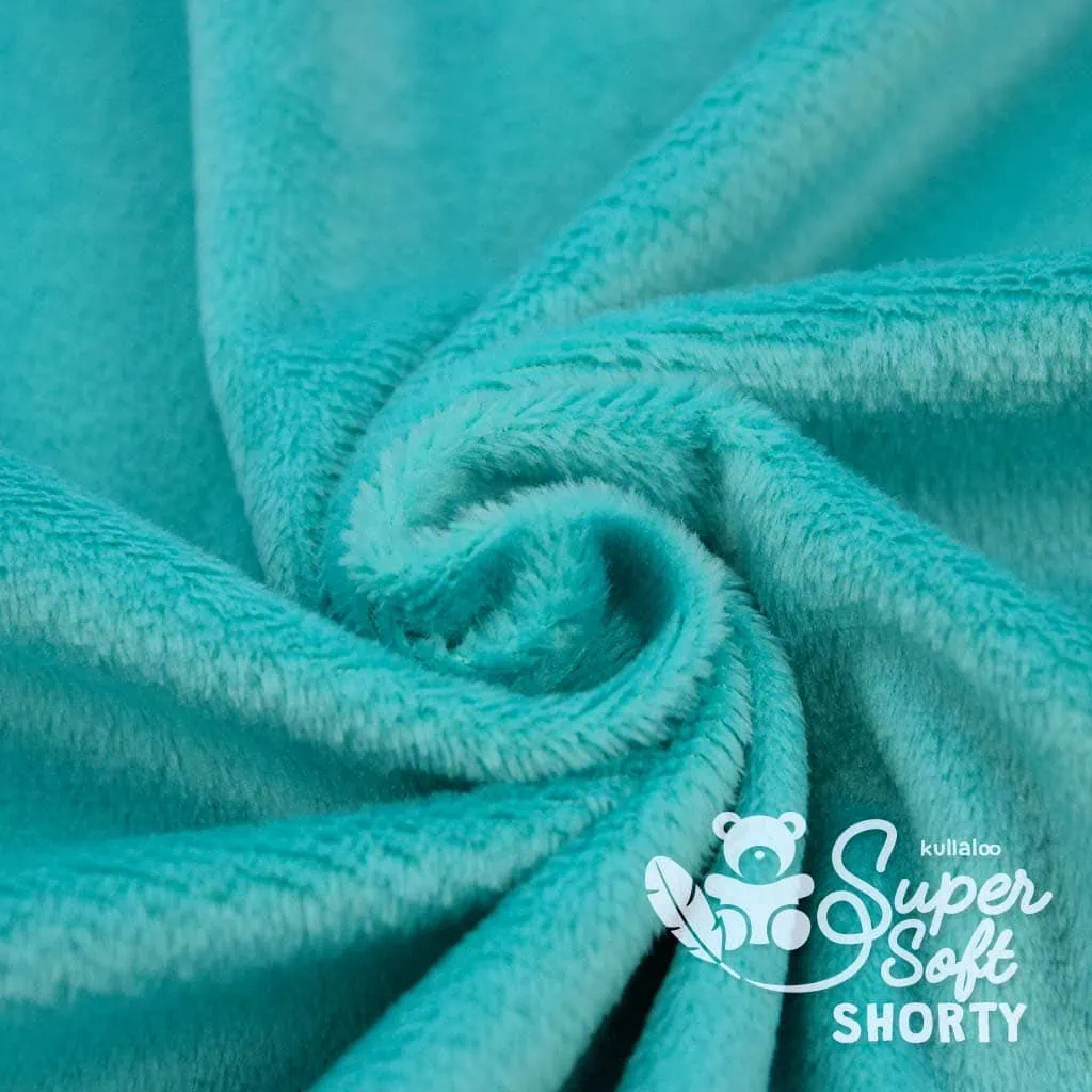 Our SuperSoft SHORTY teal minky fabric is a slightly stretchy, high-quality microfiber plush, also known as velboa fabric. The short-pile cuddle fabric is just perfect for so many sewing projects, no matter if you need it for sewing children’s toys, for decoration or home textiles. You can sew lovely plushies with the many cheerful and bright colors, but also wonderful baby blankets, comforter or other baby accessories.