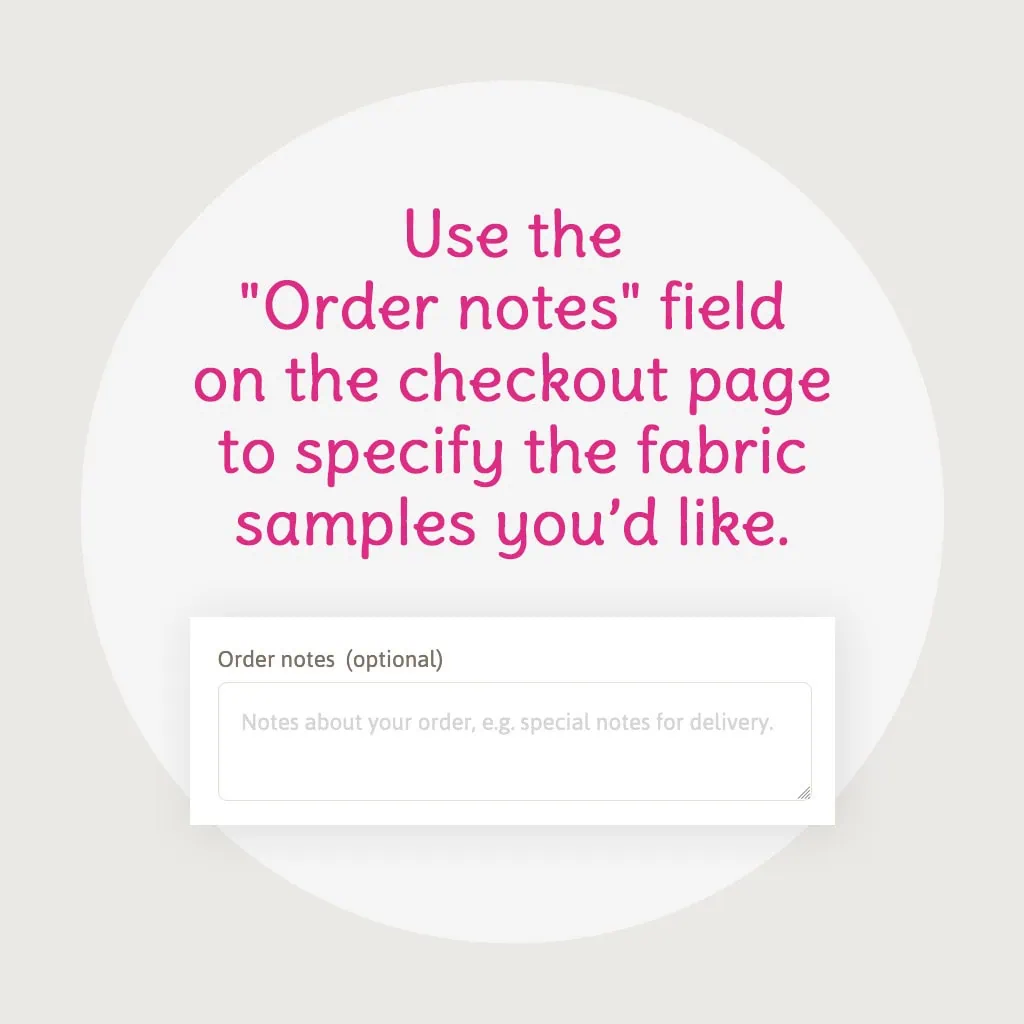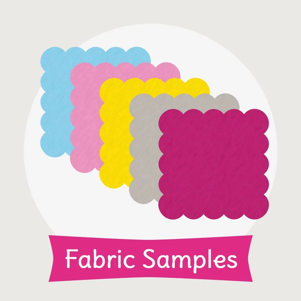 IMPORTANT: Add this product to your cart and use the “Order notes” field on the checkout page to specify the fabric samples you’d like. Be sure to include the type and color, e.g., Shorty baby pink, Squishy true red, Fuzzy Fur nimbus cloud. You’re also welcome to include the SKUs.