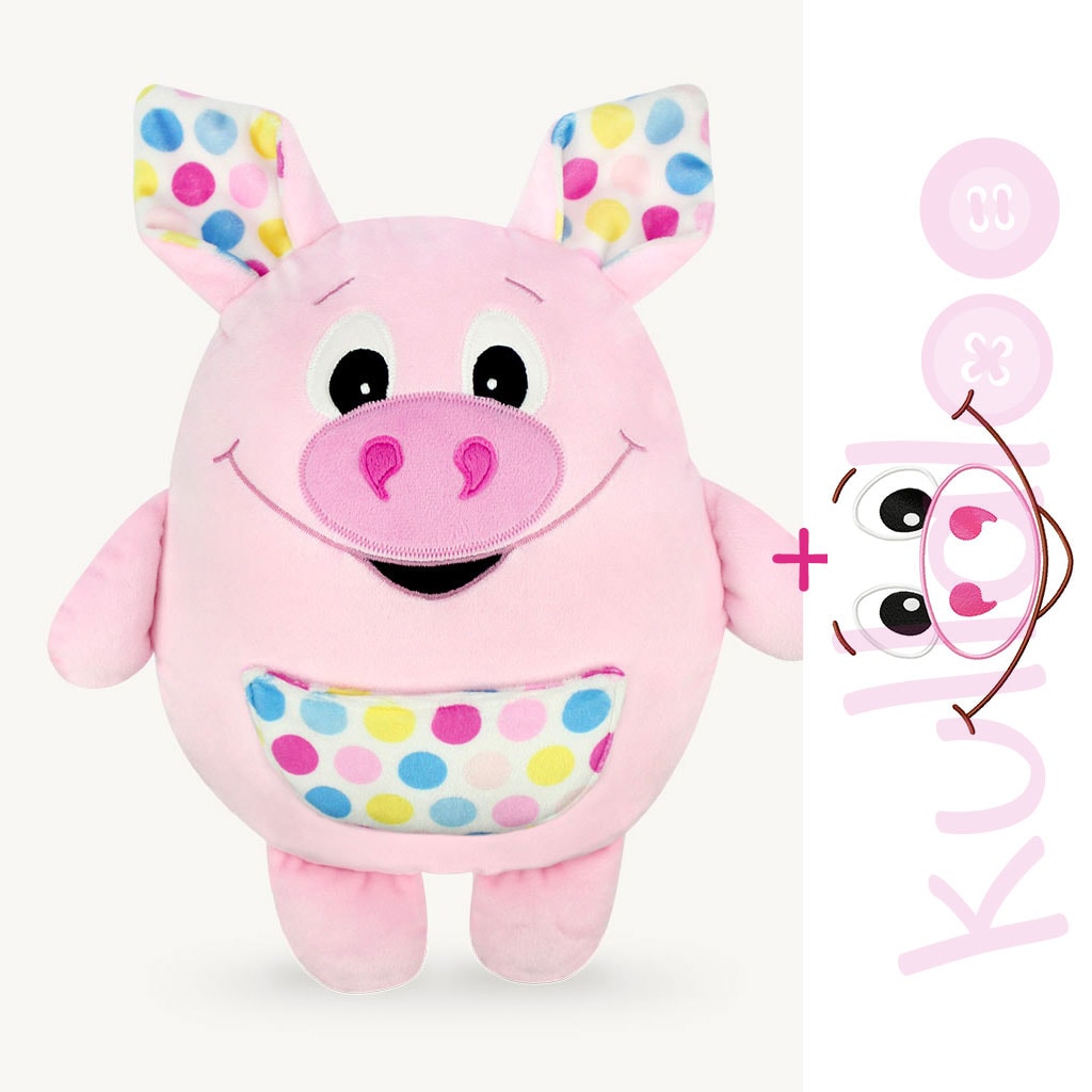 LANDOLIN is a fun-loving little pig and about 14″ (35 cm) tall. He is not just a true cuddly friend for children, he can even make grown-ups very happy. You can use the optional front pocket keep things like small books, tissues, little notes or small presents.