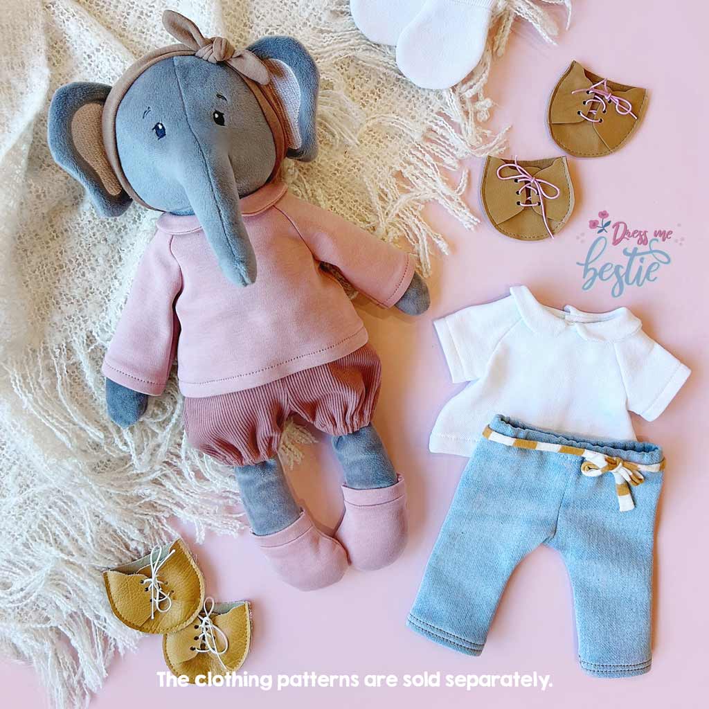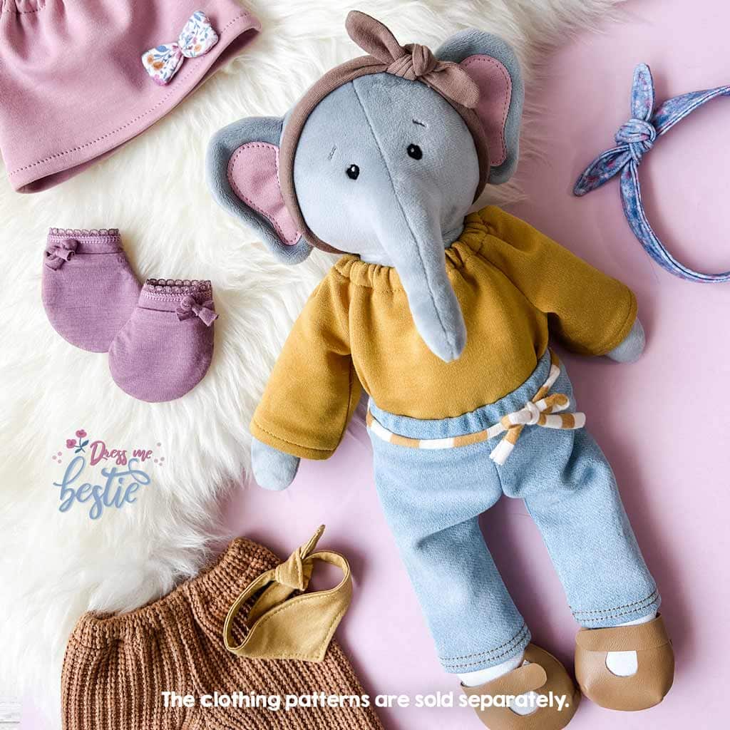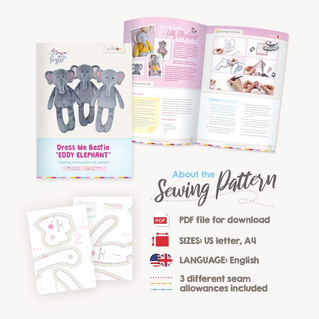 With the purchase of this PDF you will receive our elephant pattern “EDDY ELEPHANT” from our cloth rag doll pattern series “Dress Me Bestie”. The stuffed animal sewing pattern pdf comes with 3 different seam allowances (or without a seam allowance). After purchase and payment you can download the instructions and print out the PDF sewing pattern.