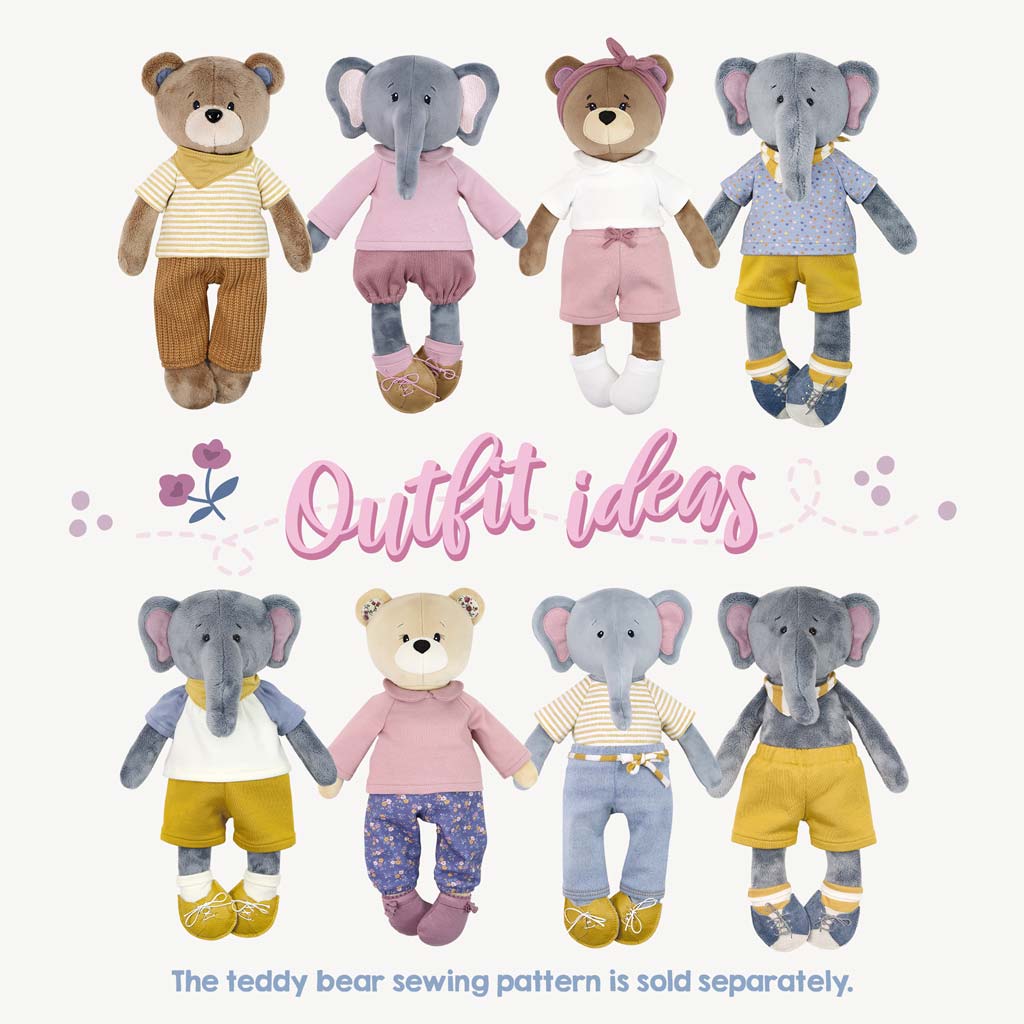 With the purchase of this PDF you will receive our stuffed elephant sewing pattern “EDDY” from our cloth doll pattern series “Dress Me Bestie” ✚ a matching doll clothes sewing pattern bundle with shirt, pants, bandan, lace-up shoes and cuff socks. The stuffed animal pattern and the clothes come with 3 different seam allowances (or without a seam allowance). After purchase and payment you can download the instructions and print out the PDF sewing patterns.