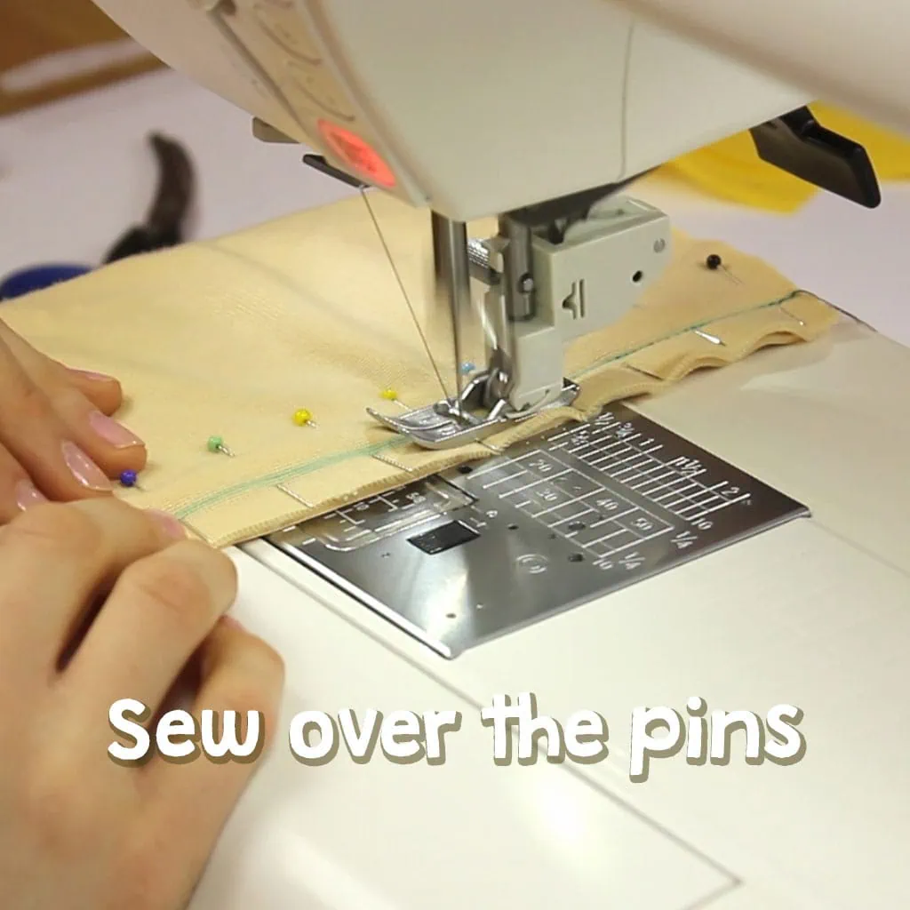 If you’re not comfortable sewing over pins, insert them so you can easily remove them just before sewing over that section. Alternatively, place pins to the side of the seam line and sew carefully around them.